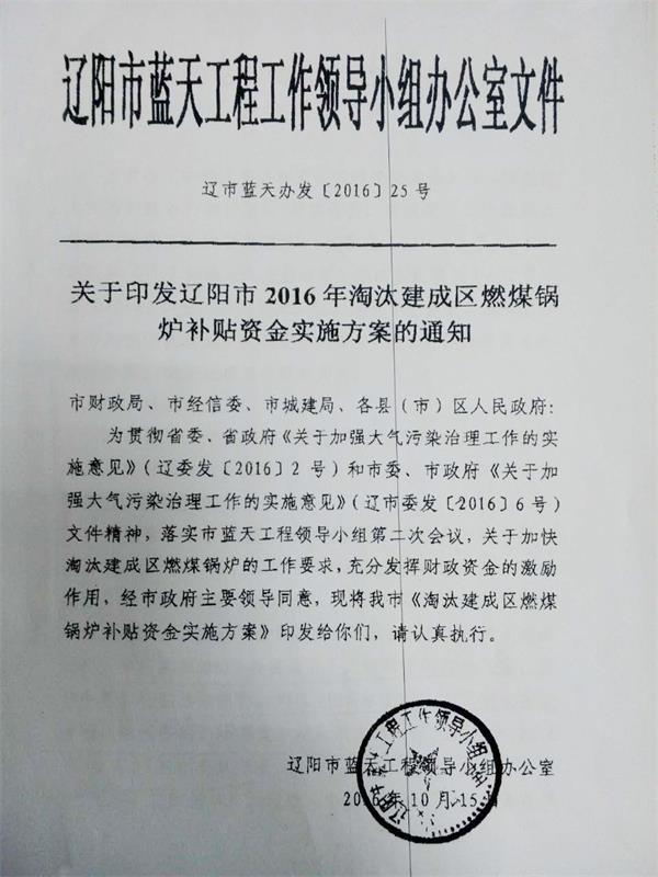 為貫徹省委、省政府《關(guān)于加強大氣污染治理工作的實施意見》(遼委發(fā){2016}2號)和市委、市政府《關(guān)于加強大氣污染治理工作的實施意見》(遼市委發(fā){2016}6號)文件精神,落實市藍天工程領(lǐng)導小組第二次會議,關(guān)于加快淘汰建成區(qū)燃煤鍋爐的工作要求,充分發(fā)揮財政資金的激勵作用,經(jīng)市政府主要領(lǐng)導同意,現(xiàn)將我市《淘汰建成區(qū)燃煤鍋爐補貼資金實施方案》印發(fā)給你們,請認真執(zhí)行。
