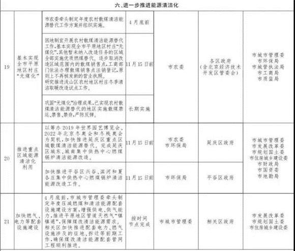 在北京市人民政府辦公廳印發(fā)的《北京市藍(lán)天保衛(wèi)戰(zhàn)2018年行動(dòng)計(jì)劃》中,明確了2018年各區(qū)清潔取暖時(shí)間表,如下: